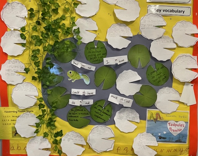 Year 2 have had another fun-packed week. In Writing we started our new book, Tadpole’s Promise. It tells the story of a tadpole and a caterpillar who meet at the edge of a pond and fall in love, but will their love endure? The tadpole and the caterpillar promise each other that they will never change, but the tadpole struggles to keep his promise. Inspired by the story, the children made their own promises and wrote them on lily pads, which are now displayed on our class working wall.