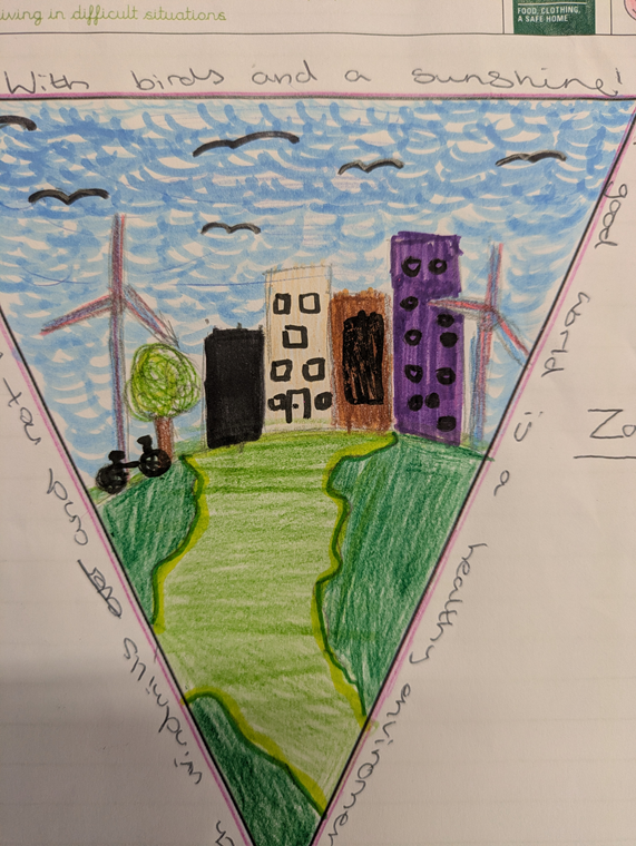 In PSHE this term, Year 6 have been thinking carefully about the news and how it can affect our mental health. We discussed how constant exposure to difficult or upsetting events can make people feel worried, overwhelmed or helpless, and explored ways to manage these feelings, such as talking to someone we trust, limiting screen time and focusing on positive actions we can take. The children also shared their dreams for the world. Their ideas included a world with no war, equal opportunities for everyone, an end to homelessness, better care for the environment, kindness spreading through communities, and access to education for all children. They then illustrated their hopes and aspirations, and their thoughtful artwork is pictured below.